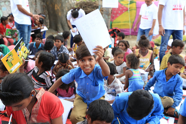 The VEDANTA KHUSHI workshop began with lessons on literacy. Each child was asked to write their name and few moral values as they were given a note-book, a pencil, a sharper and eraser. Some knew how to write and some were taught. Post class on literacy, the children were given colour books and colours.